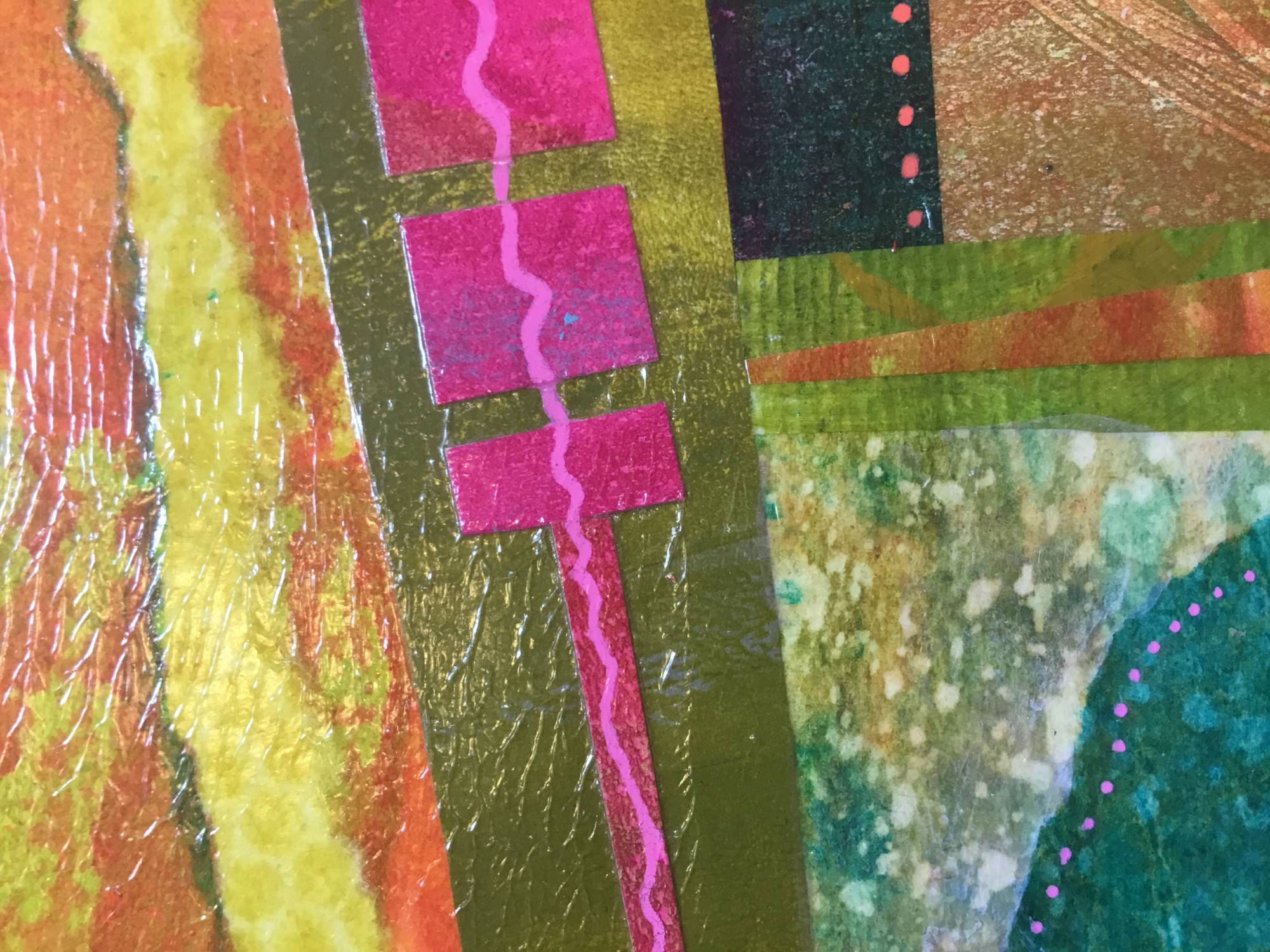 - acrylic and hanpainted papers on cradled wooden panel